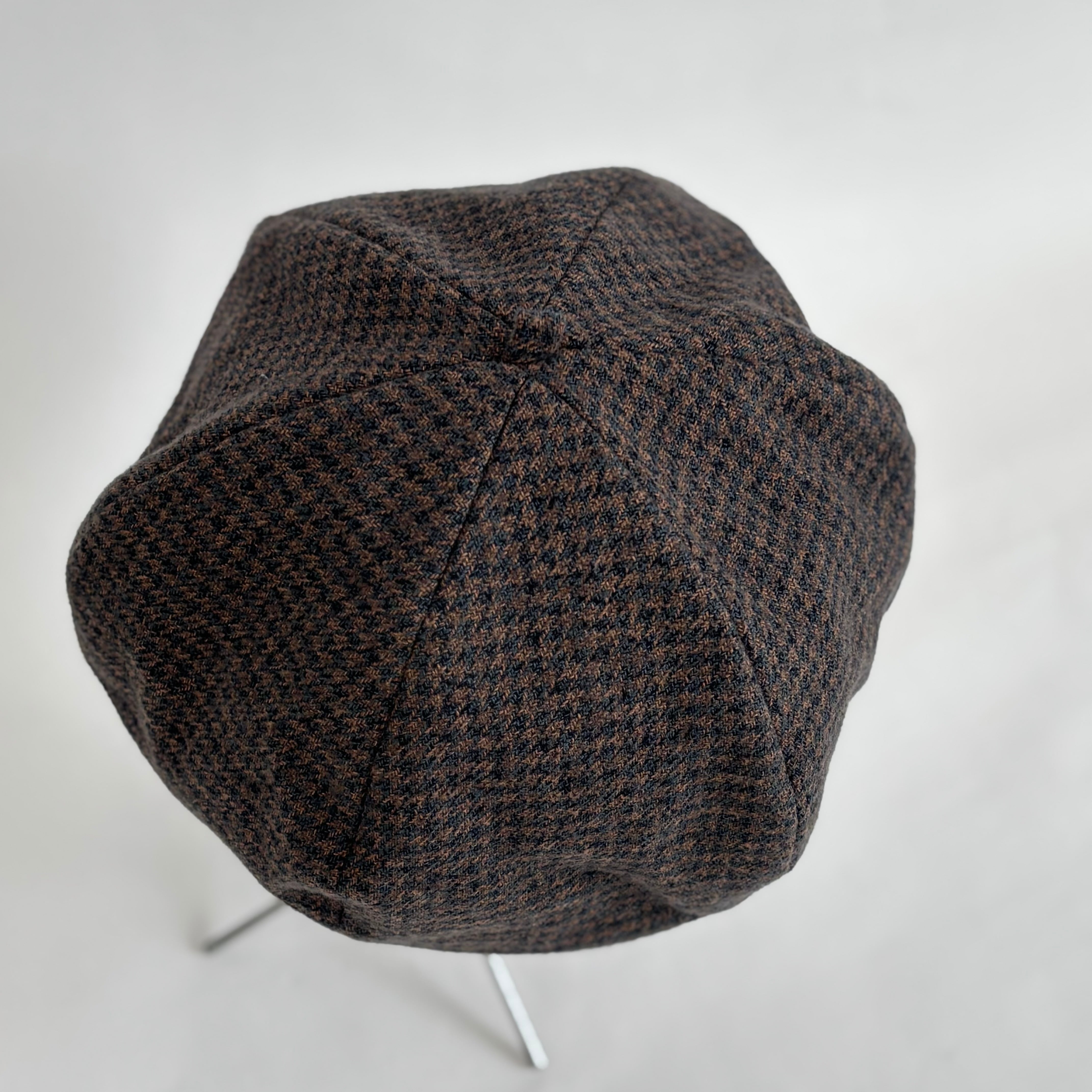 千鳥格子のコットンツイード生地で作った丸みのあるベレー帽です。